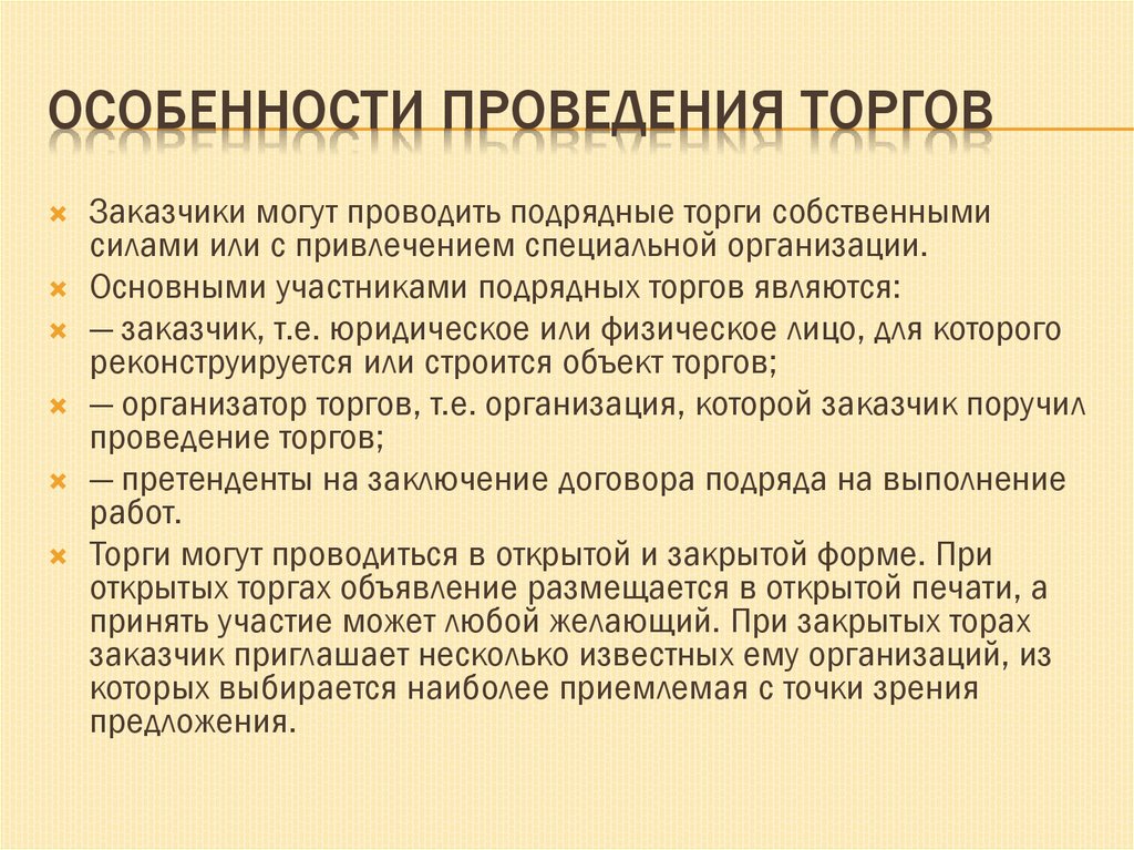 ОСОБЕННОСТИ ПРОВЕДЕНИЯ ТОРГОВЗаказчики могут проводить подрядные торги собственными