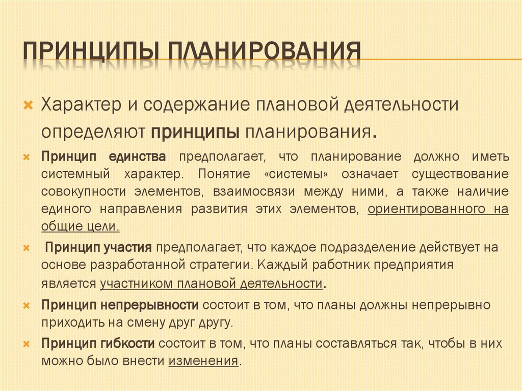 ПРИНЦИПЫ ПЛАНИРОВАНИЯХарактер и содержание плановой деятельности