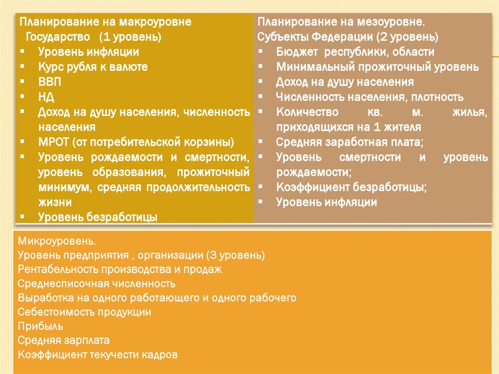 Планирование на макроуровнеПланирование на мезоуровне.