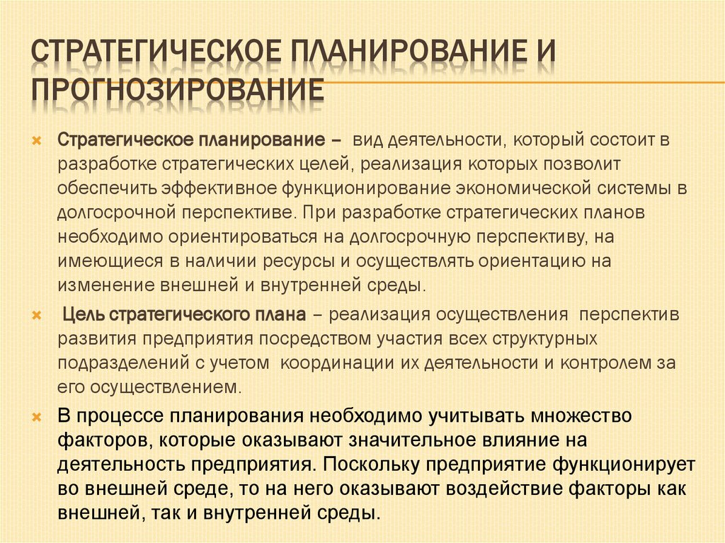 Поскольку прогнозирование и планирование являются
