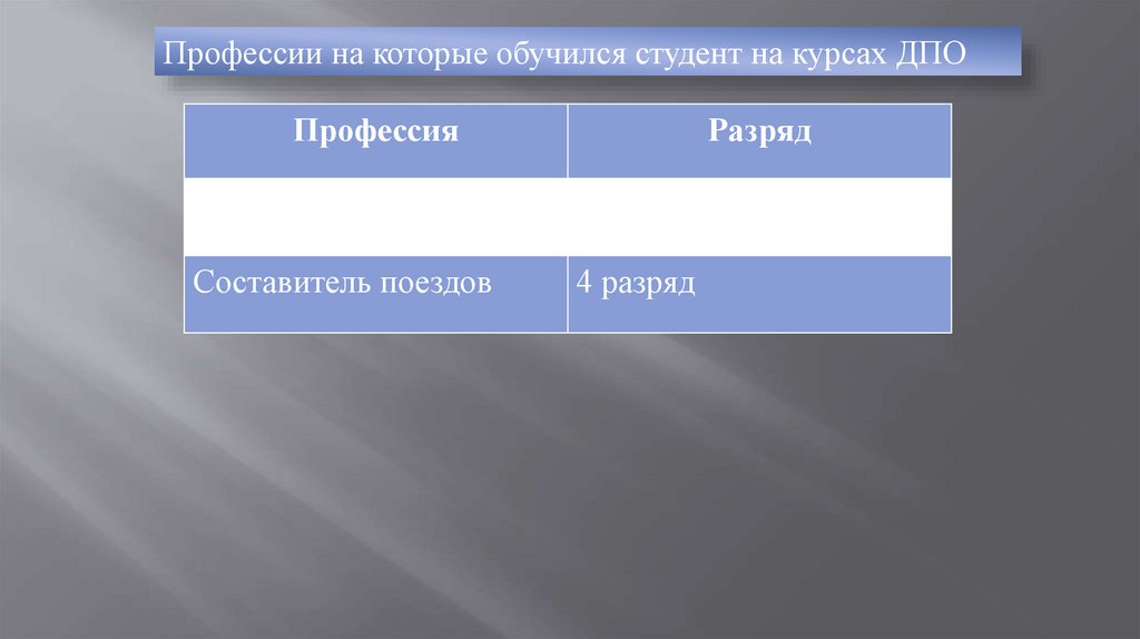 Профессии на которые обучился студент на курсах ДПОПрофессия