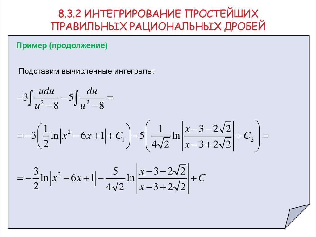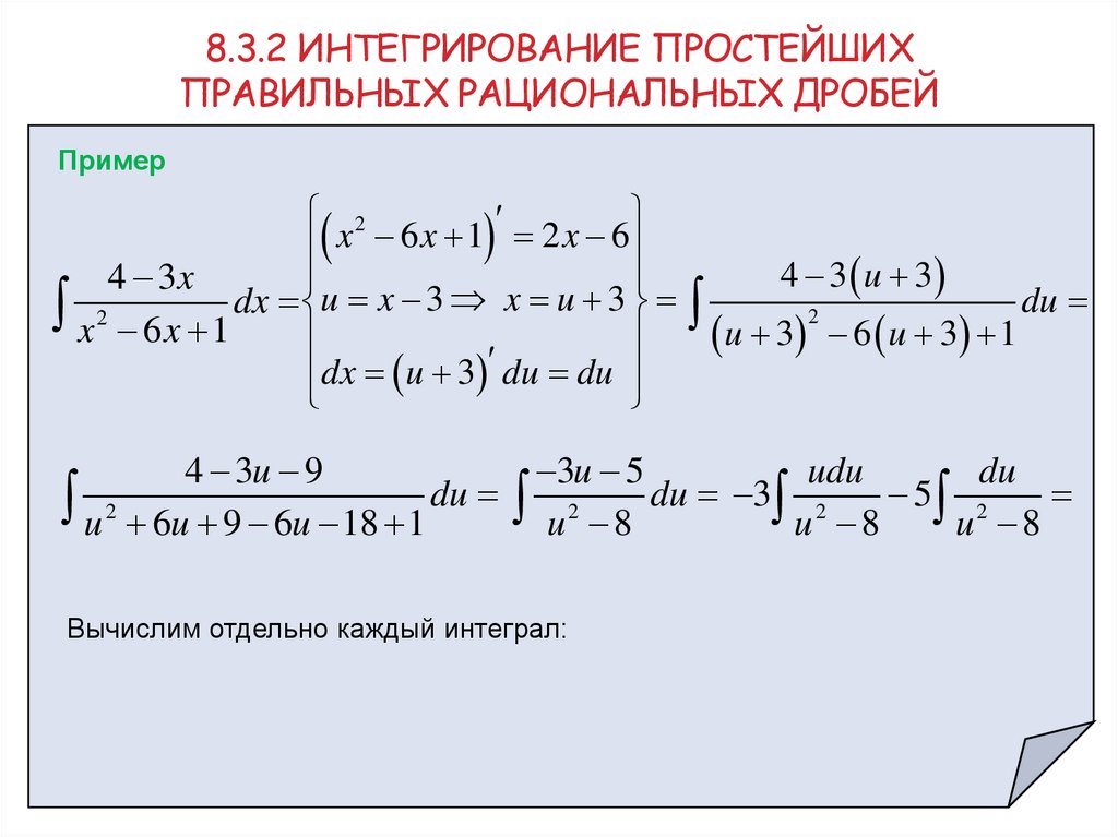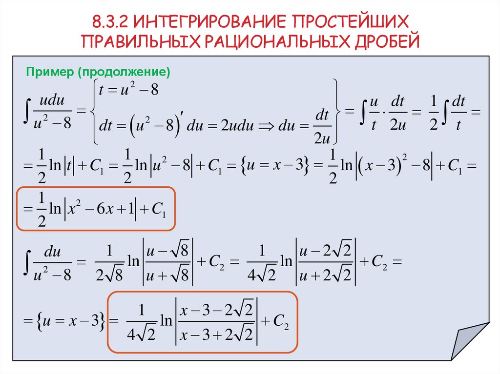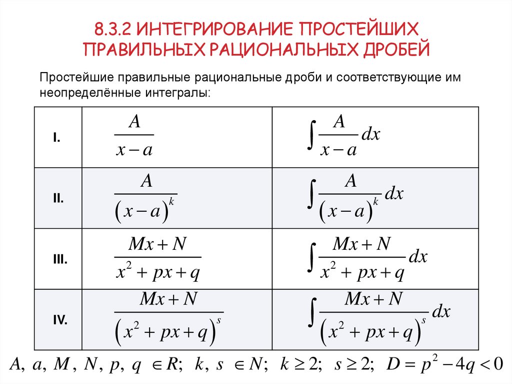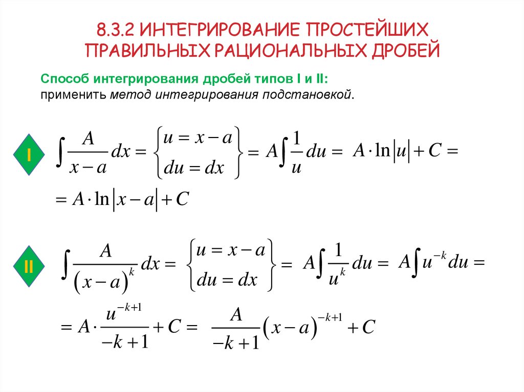 8. 8.3.2 Интегрирование простейших правильных рациональных дробей