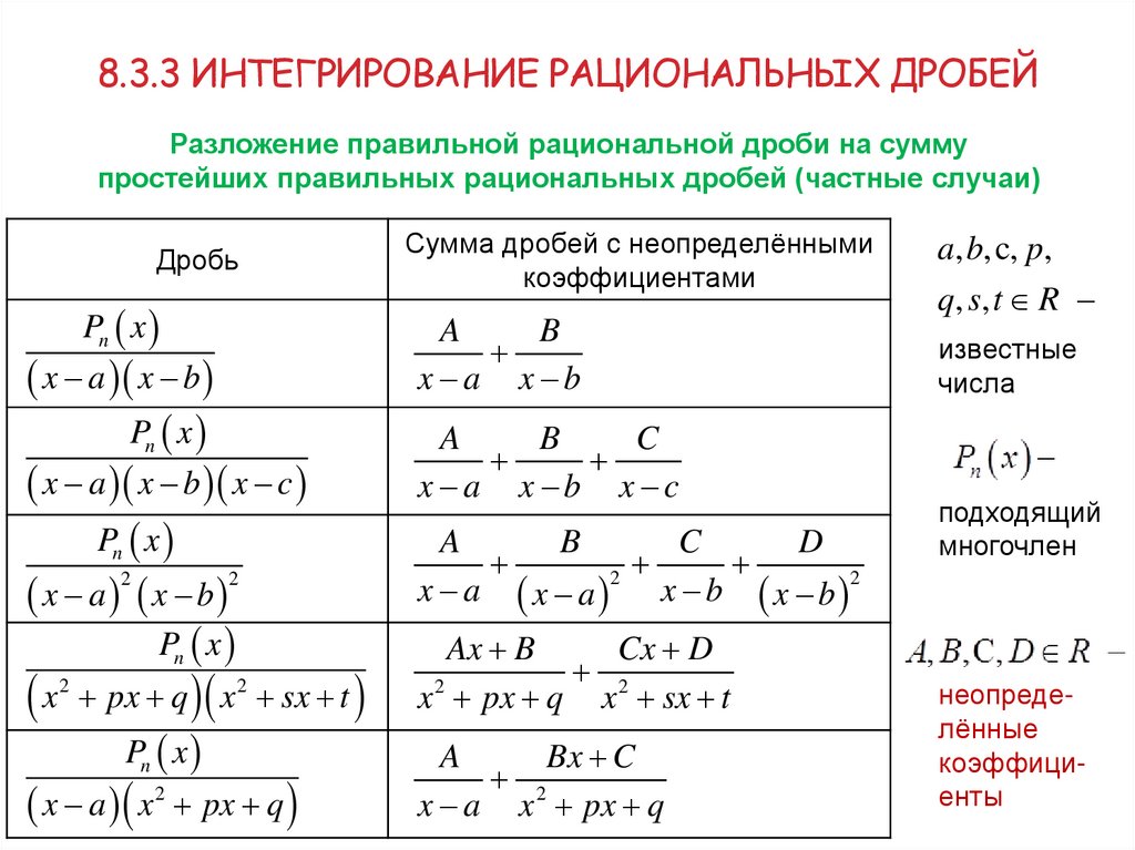 8.3 Интегрирование рациональных функций