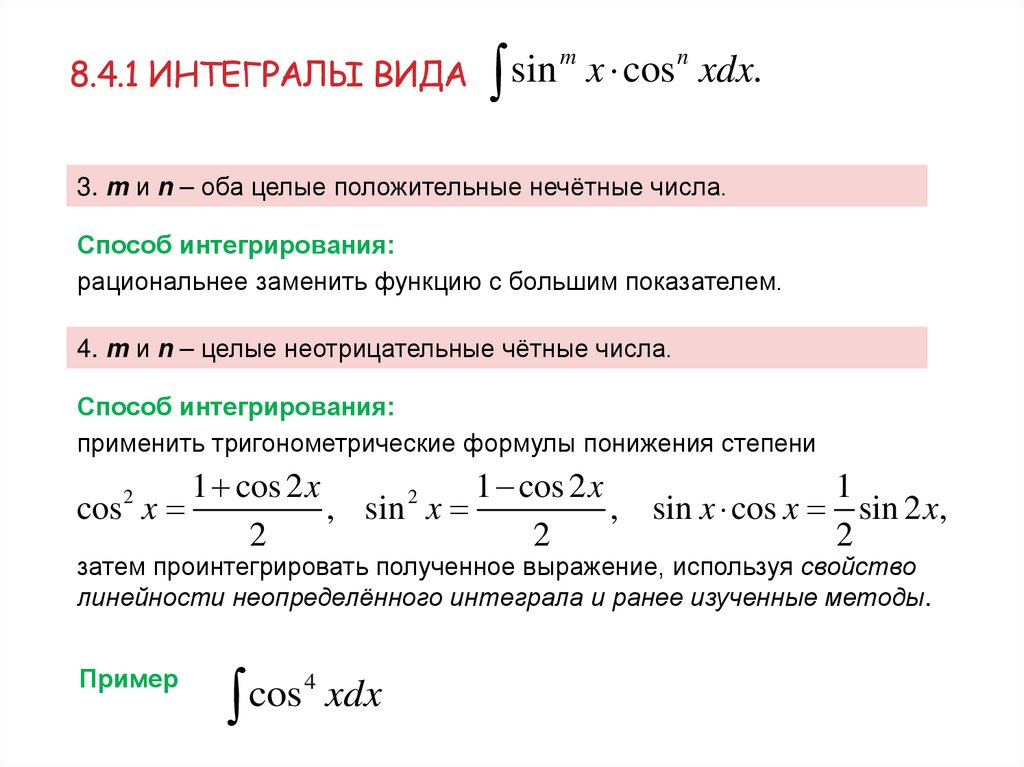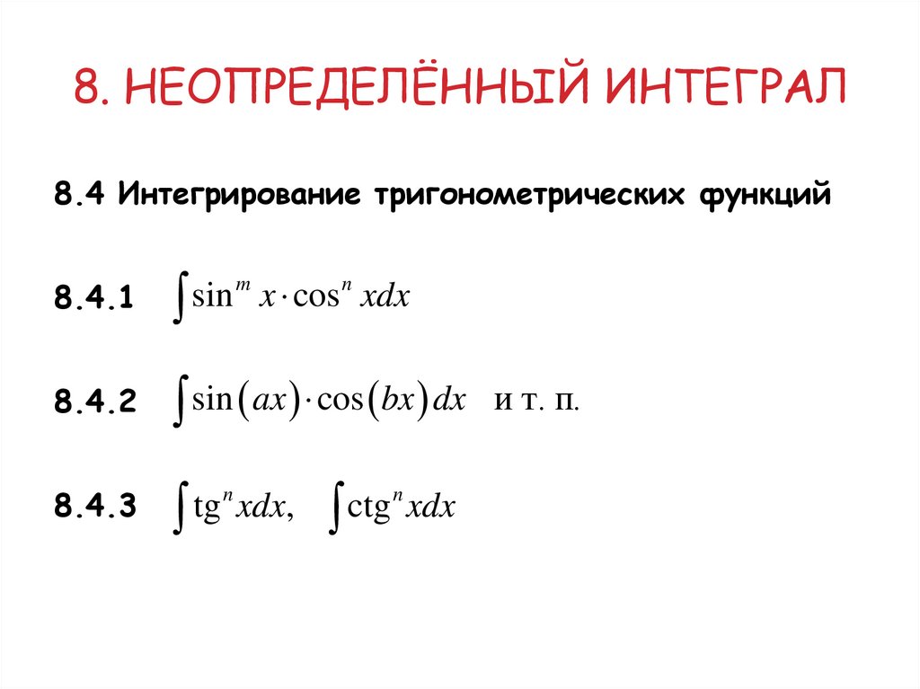 8.4 Интегрирование тригонометрических функций