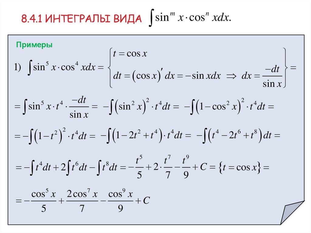 32. 8.5.2 интегралы вида