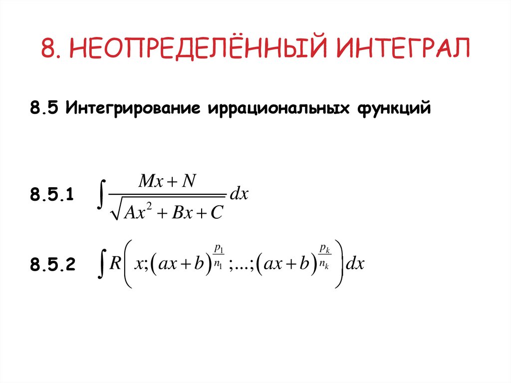 8. НЕОПРЕДЕЛЁННЫЙ ИНТЕГРАЛ8.5 Интегрирование иррациональных функций