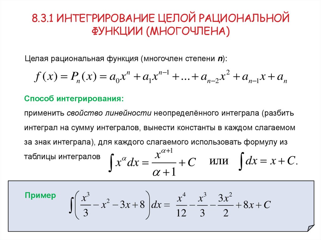 8.3.1 ИНТЕГРИРОВАНИЕ ЦЕЛОЙ РАЦИОНАЛЬНОЙФУНКЦИИ (МНОГОЧЛЕНА)