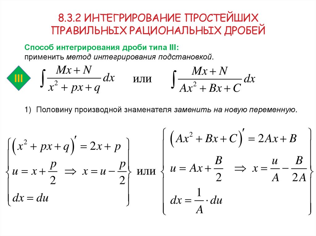 Способ интегрирования дроби типа III:
