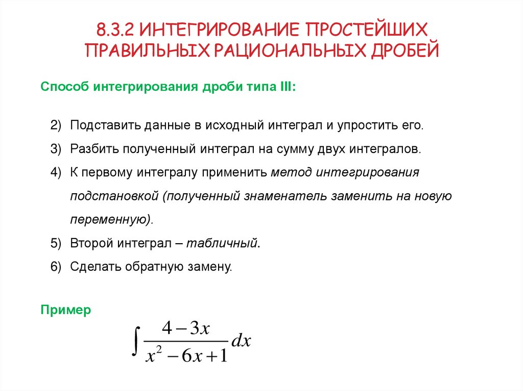 7. 8.3.2 Интегрирование простейших правильных рациональных дробей
