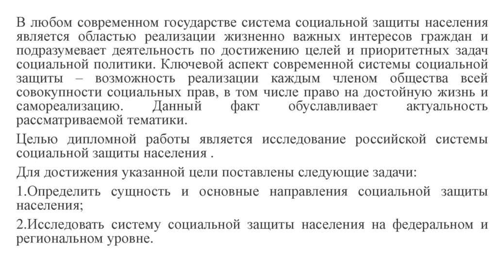 В любом современном государстве система социальной защиты населенияявляется областью реализации жизненно важных интересов граждан и