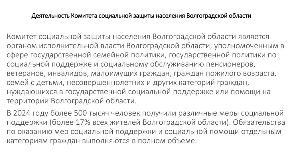 8. Деятельность Комитета социальной защиты населения Волгоградской области