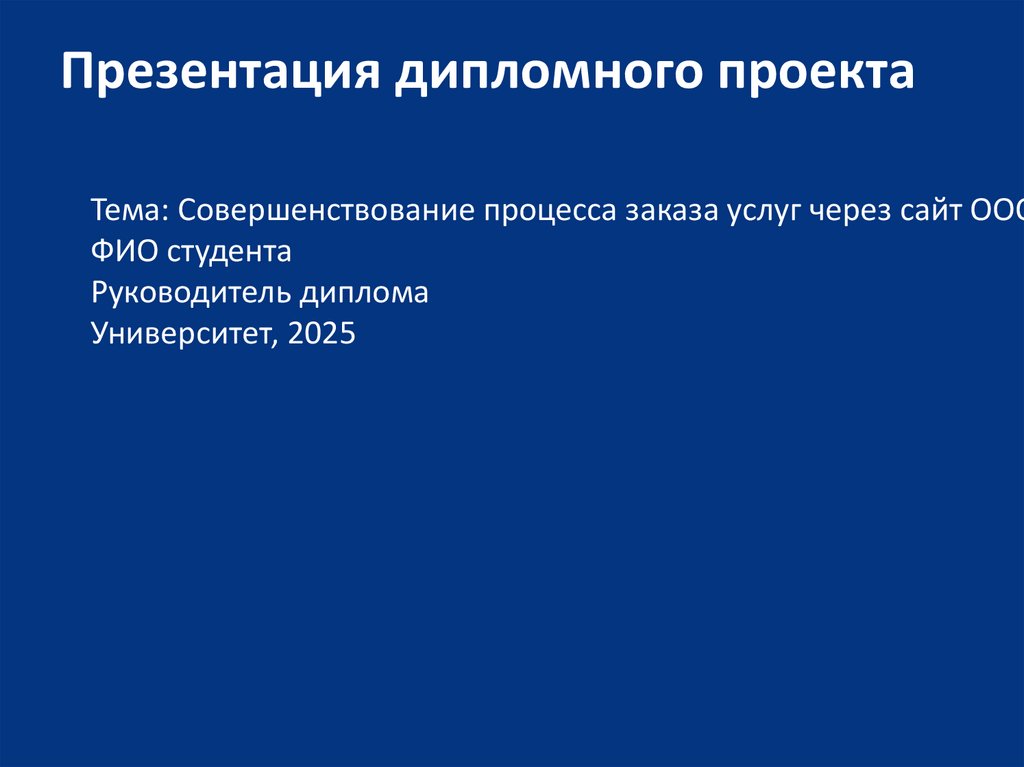 Презентация дипломного проектаТема: Совершенствование процесса заказа услуг через сайт ООО