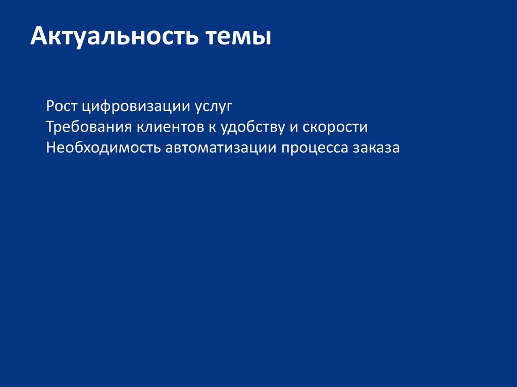 Актуальность темыРост цифровизации услуг