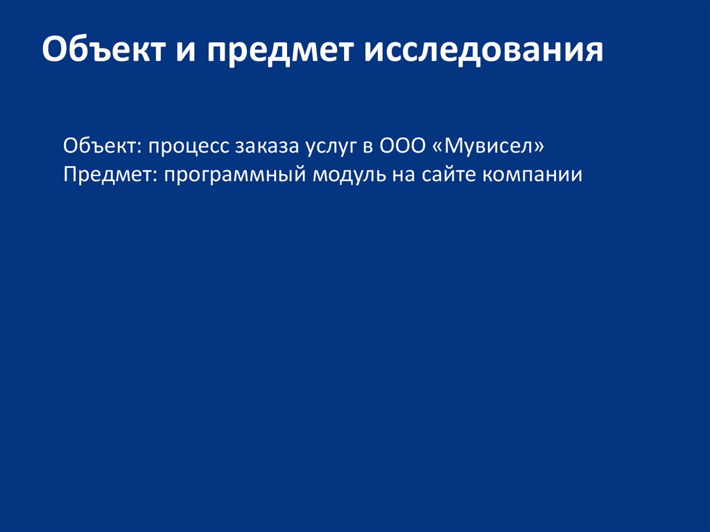 Объект и предмет исследованияОбъект: процесс заказа услуг в ООО «Мувисел»