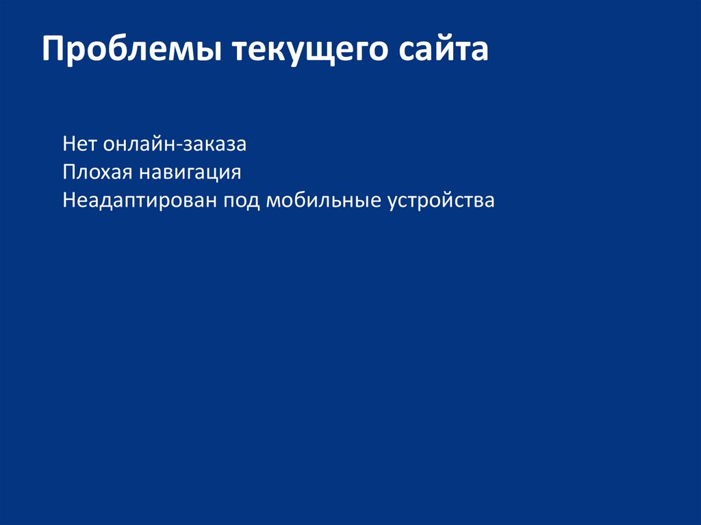 Проблемы текущего сайтаНет онлайн-заказа