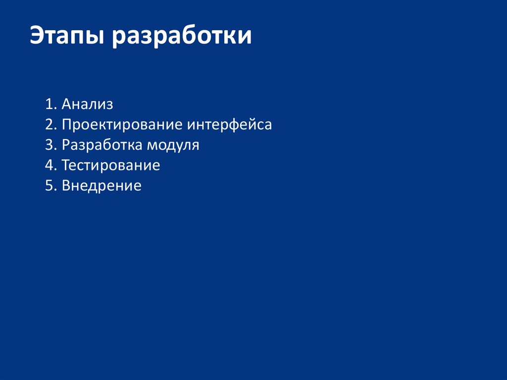 Этапы разработки1. Анализ