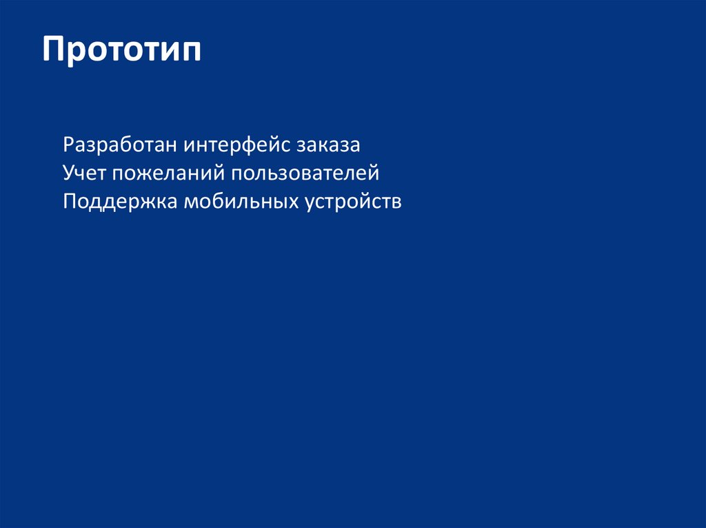 ПрототипРазработан интерфейс заказа