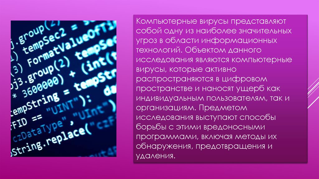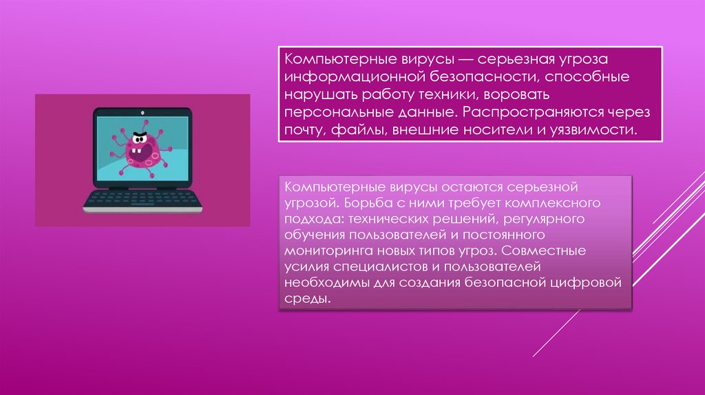 Компьютерные вирусы — серьезная угрозаинформационной безопасности, способные
