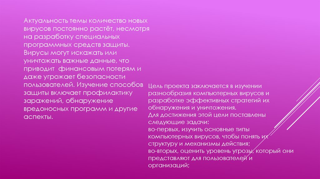 Актуальность темы количество новыхвирусов постоянно растёт, несмотря