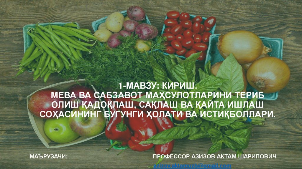 1. 1-МАВЗУ: КИРИШ. МЕВА ВА САБЗАВОТ МАҲСУЛОТЛАРИНИ ТЕРИБ ОЛИШ ҚАДОҚЛАШ, САҚЛАШ ВА ҚАЙТА ИШЛАШ СОҲАСИНИНГ БУГУНГИ ҲОЛАТИ ВА