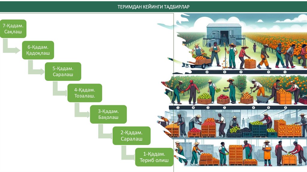Мева ва сабзавотларни териб олиш, қадоқлаш, сақлаш ва қайта ишлаш соҳасининг ҳозирги ҳолати ва истиқболлари (1-мавзу)