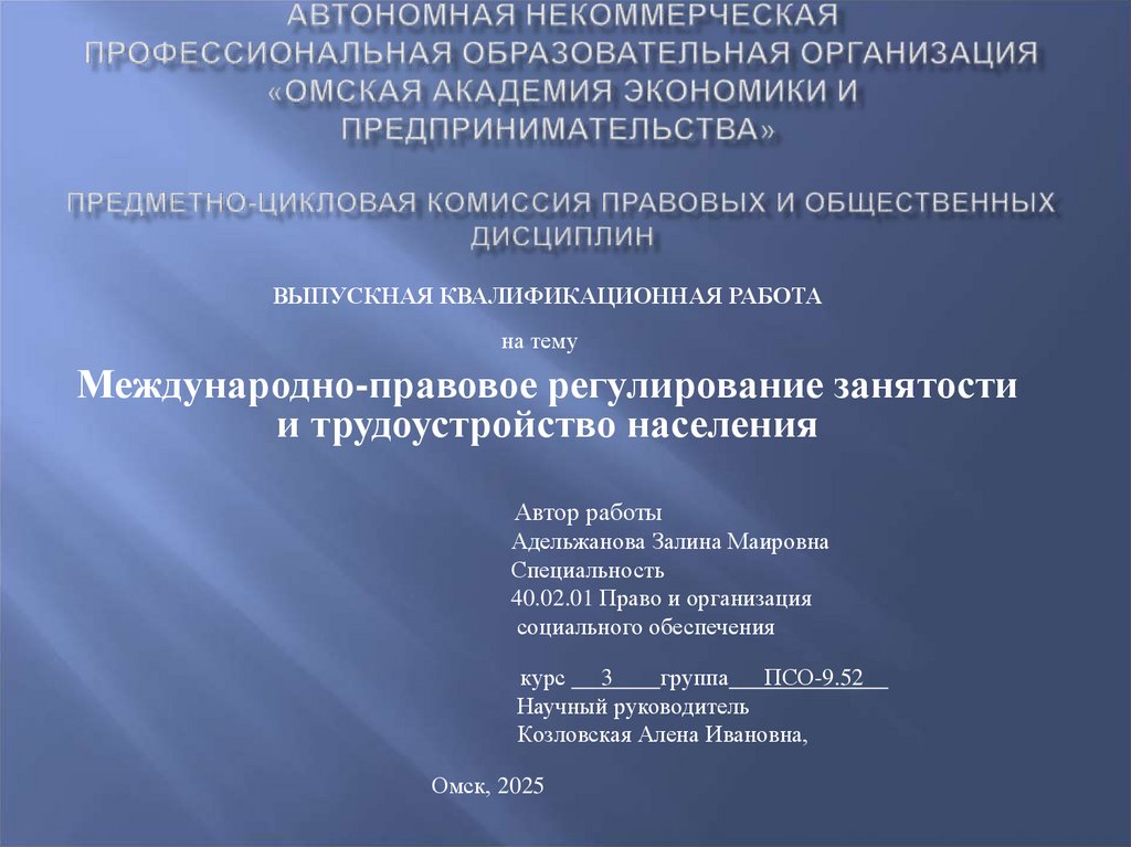 1. Автономная некоммерческая профессиональная образовательная организация «ОМСКАЯ АКАДЕМИЯ ЭКОНОМИКИ И ПРЕДПРИНИМАТЕЛЬСТВА»