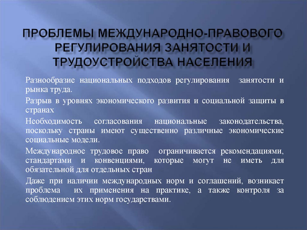 8. проблемы международно-правового регулирования занятости и трудоустройства населения