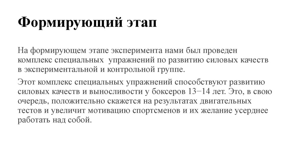 Формирующий этапНа формирующем этапе эксперимента нами был проведен