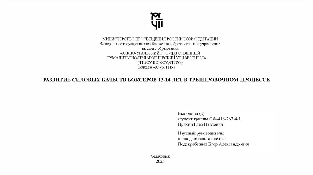 (ФГБОУ ВО «ЮУрГГПУ»)