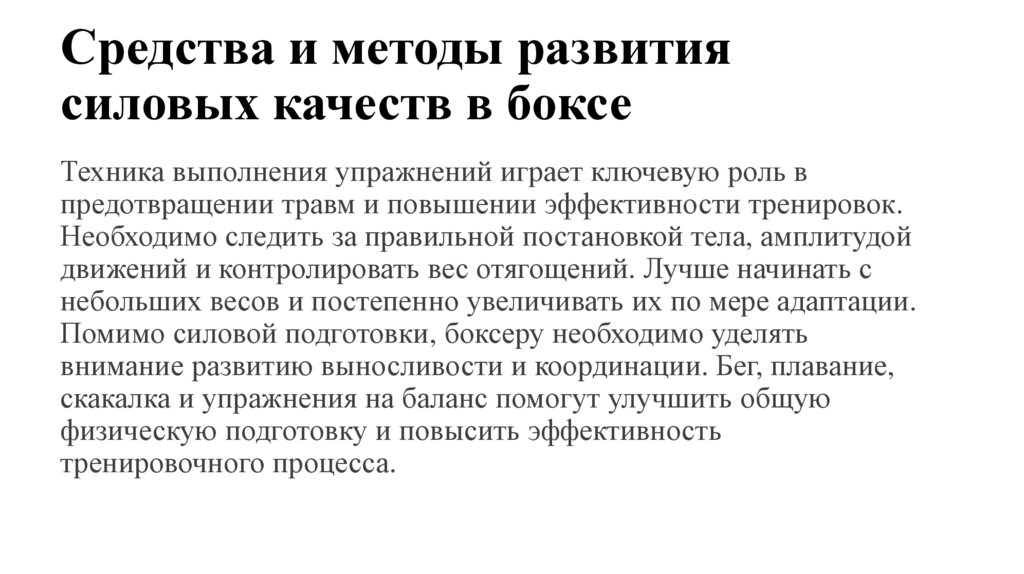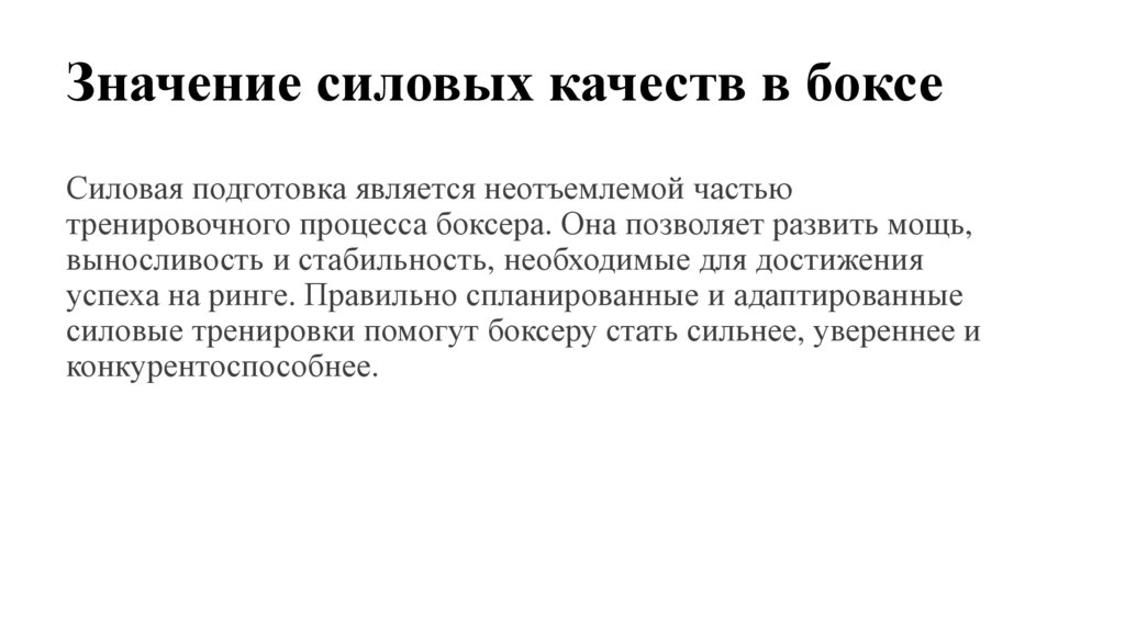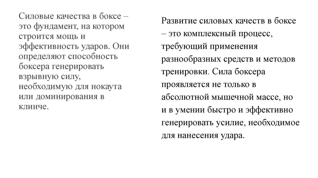 тренировочного процесса боксера. Она позволяет развить мощь,