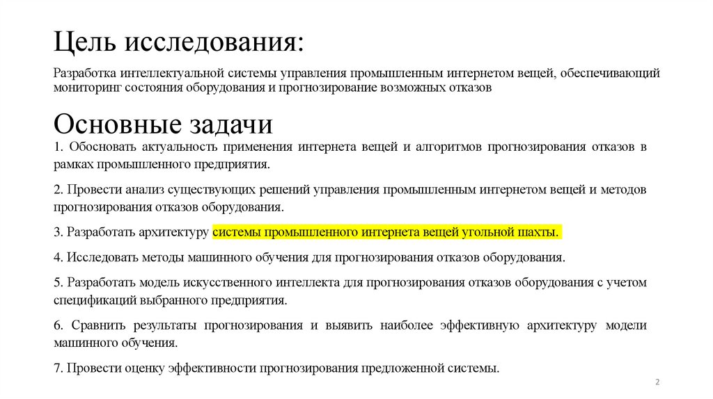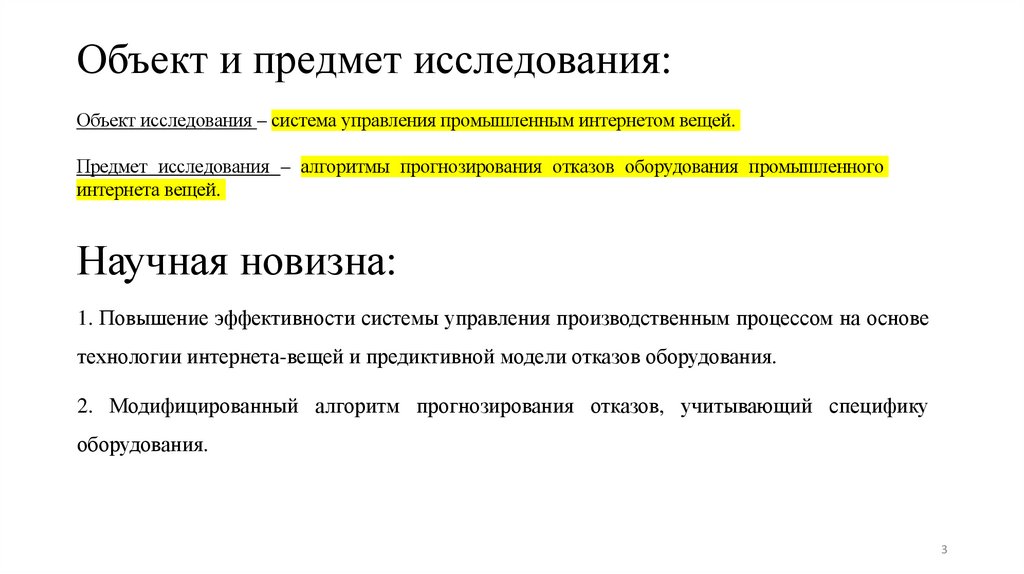 Объект исследования – система управления промышленным интернетом вещей.Предмет исследования – алгоритмы прогнозирования отказов оборудования промышленного