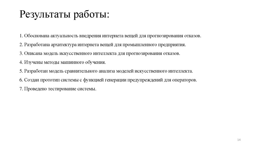 Результаты работы:1. Обоснована актуальность внедрения интернета вещей для прогнозирования отказов.