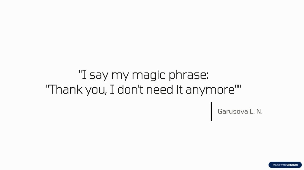 "I say my magic phrase:"Thank you, I don't need it anymore""