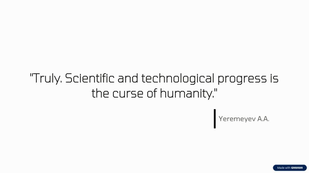 "Truly. Scientific and technological progress isthe curse of humanity."