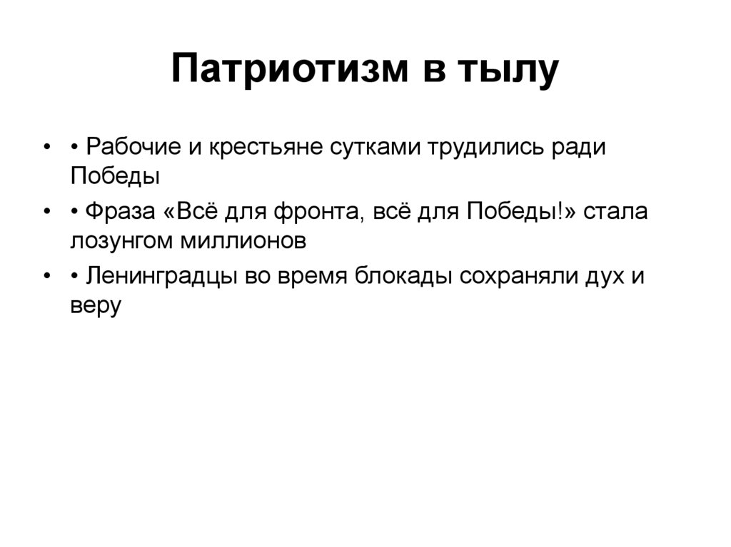 Патриотизм в тылу• • Рабочие и крестьяне сутками трудились ради