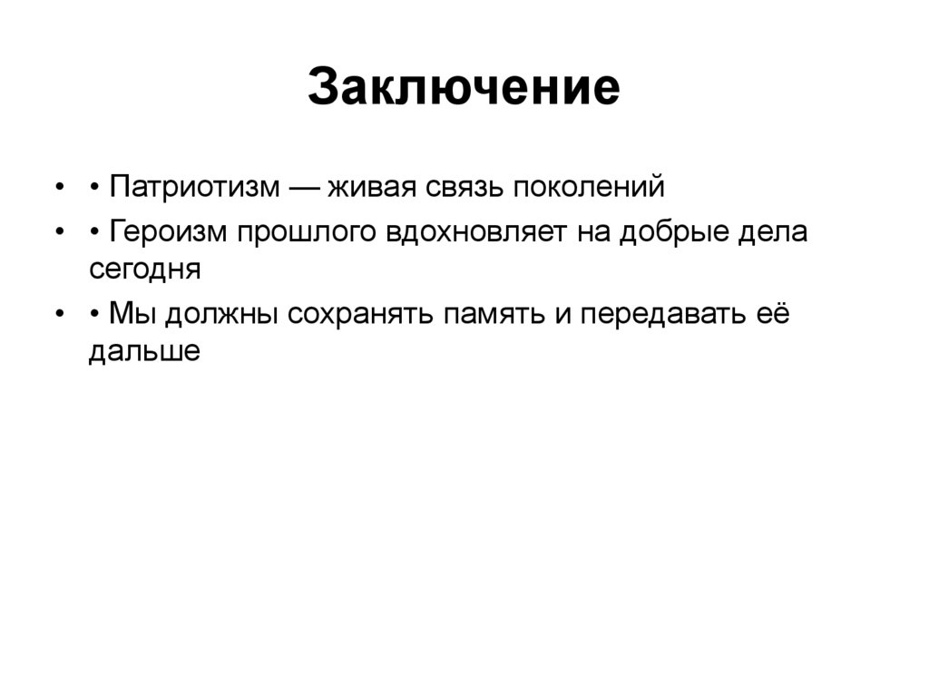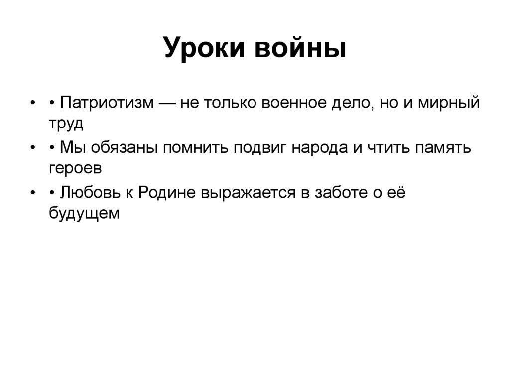 Уроки войны• • Патриотизм — не только военное дело, но и мирный