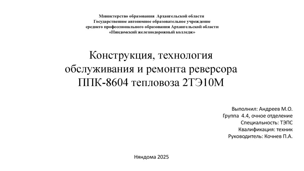 Конструкция, технология обслуживания и ремонта реверсора ППК-8604 тепловоза 2ТЭ10М