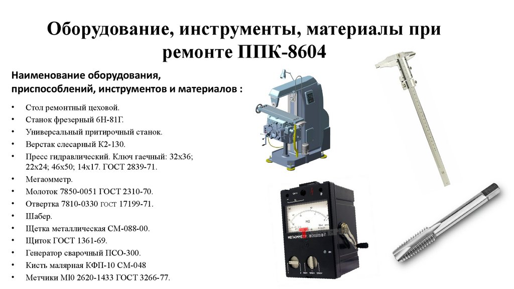 Оборудование, инструменты, материалы приремонте ППК-8604