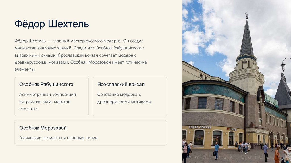Фёдор ШехтельФёдор Шехтель — главный мастер русского модерна. Он создал
