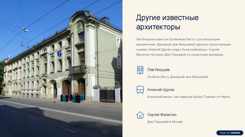множество знаковых зданий. Среди них Особняк Рябушинского с