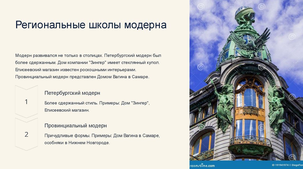 Региональные школы модернаМодерн развивался не только в столицах. Петербургский модерн был