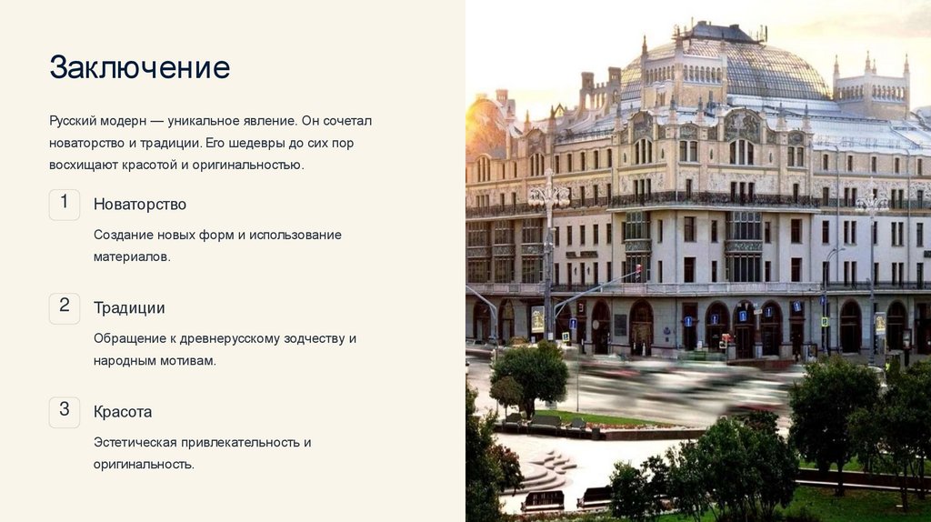ЗаключениеРусский модерн — уникальное явление. Он сочетал
