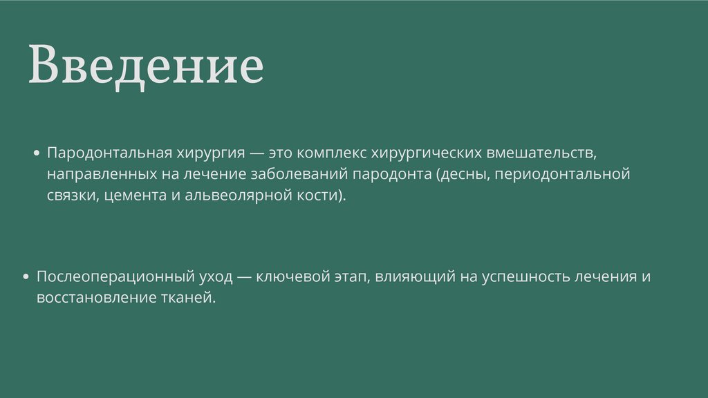ВведениеПародонтальная хирургия — это комплекс хирургических вмешательств,