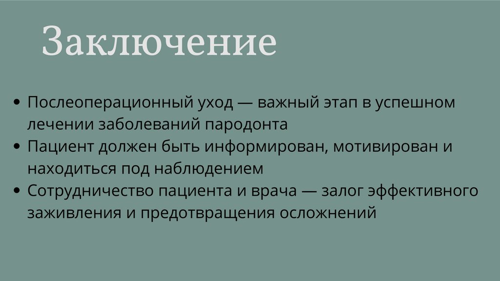 ЗаключениеПослеоперационный уход — важный этап в успешном