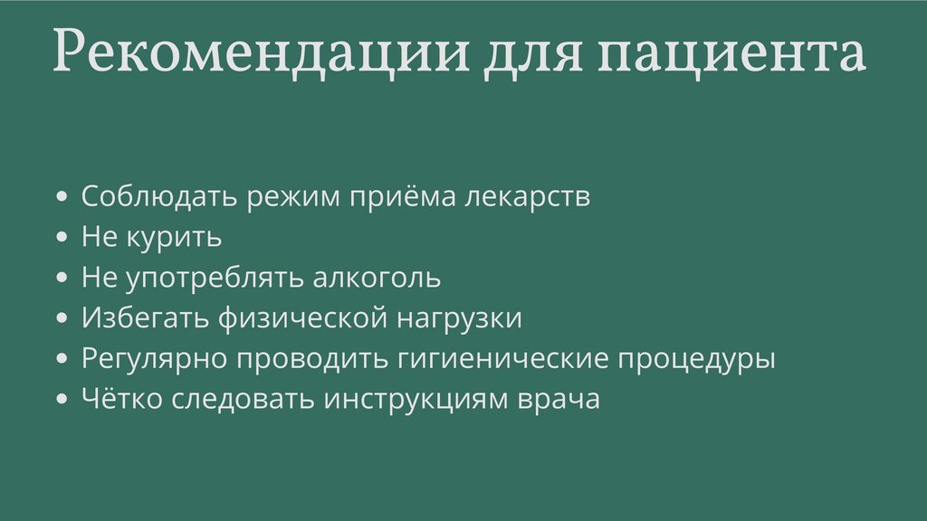 Рекомендации для пациентаСоблюдать режим приёма лекарств