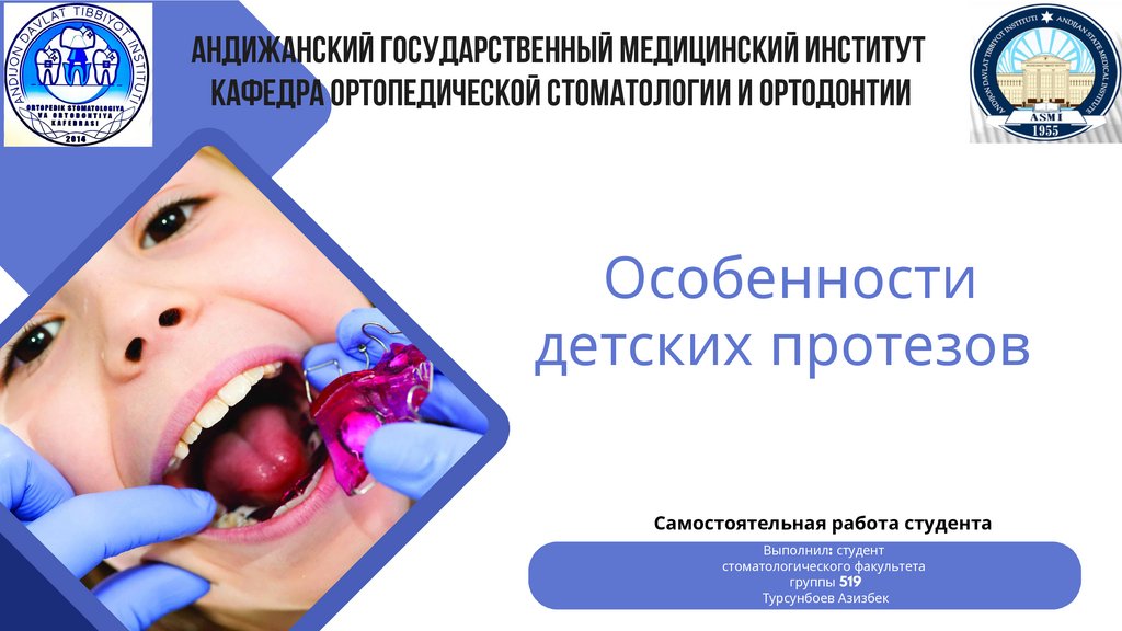 Андижанский государственный медицинский институтКафедра ортопедической стоматологии и ортодонтии