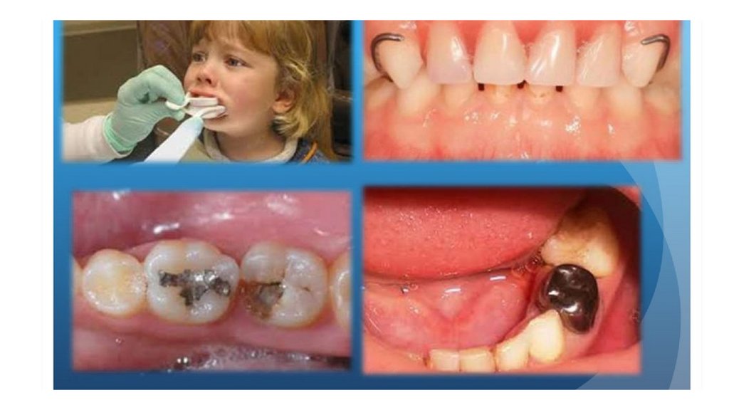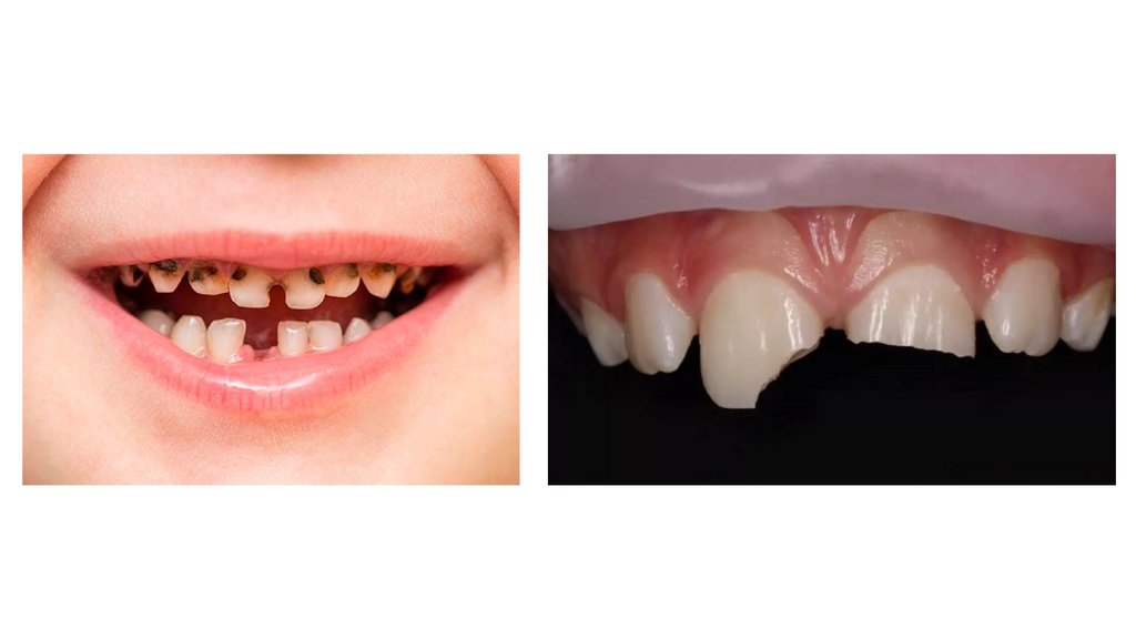 разрушение зубов, воспалительные процессы в полости рта, травмы