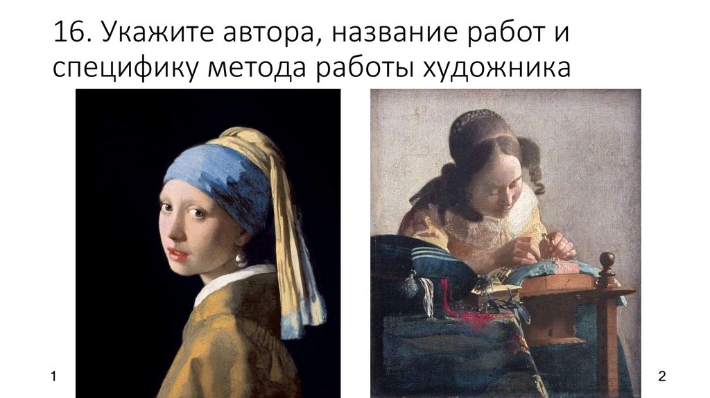 19. 16. Укажите автора, название работ и специфику метода работы художника