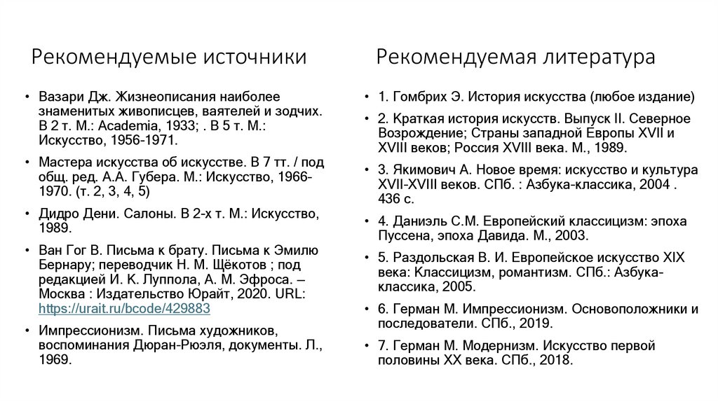 • Вазари Дж. Жизнеописания наиболеезнаменитых живописцев, ваятелей и зодчих.