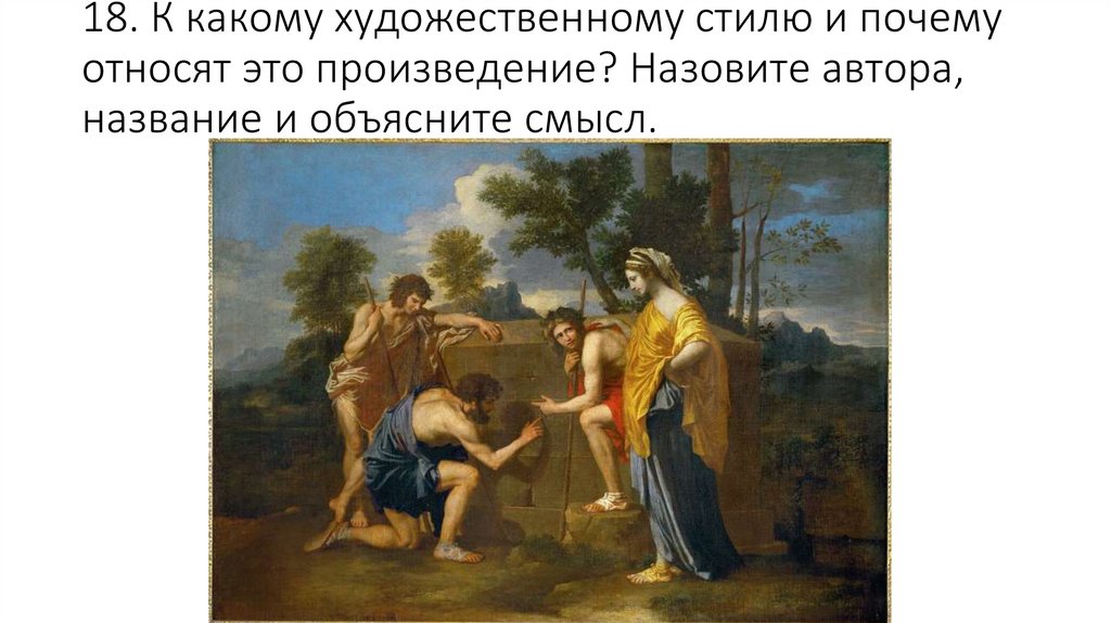 21. 18. К какому художественному стилю и почему относят это произведение? Назовите автора, название и объясните смысл.